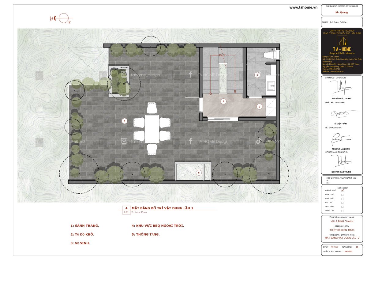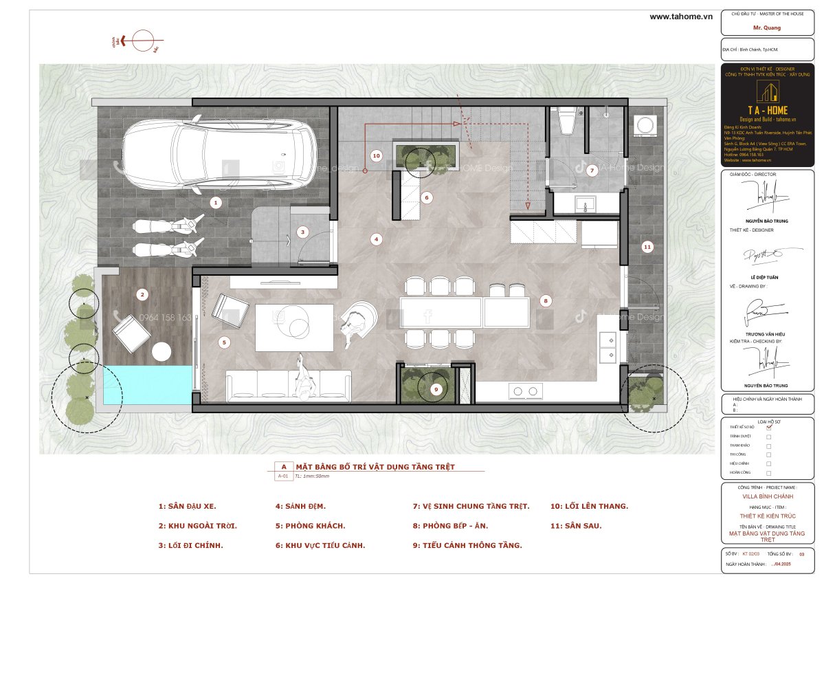 Tùy vào mức đầu tư của gia chủ mà TA-Home có thiết kế vật liệu hoàn thiện phù hợp, Sẽ báo giá dựa trên nhà sản xuất, kiểu dáng và chủng loại vật liệu, bao gồm các hạng mục, vật tư: