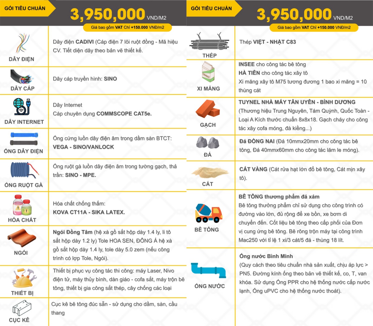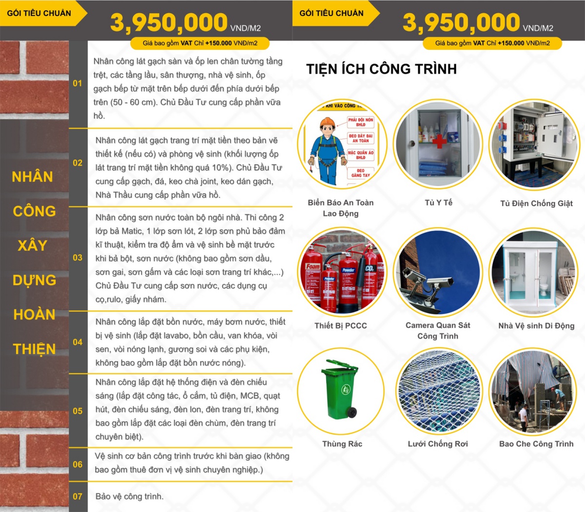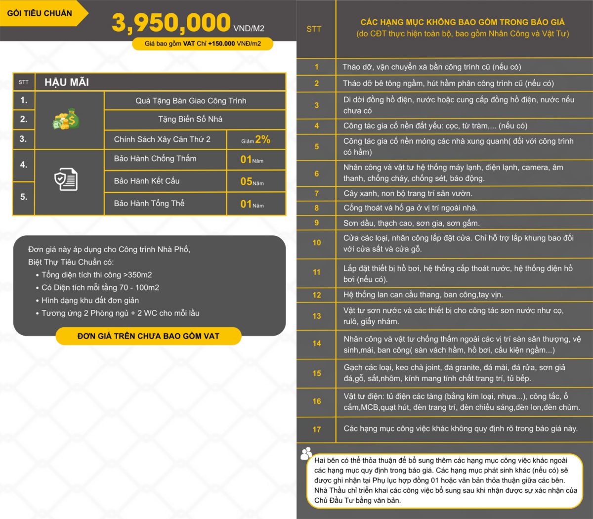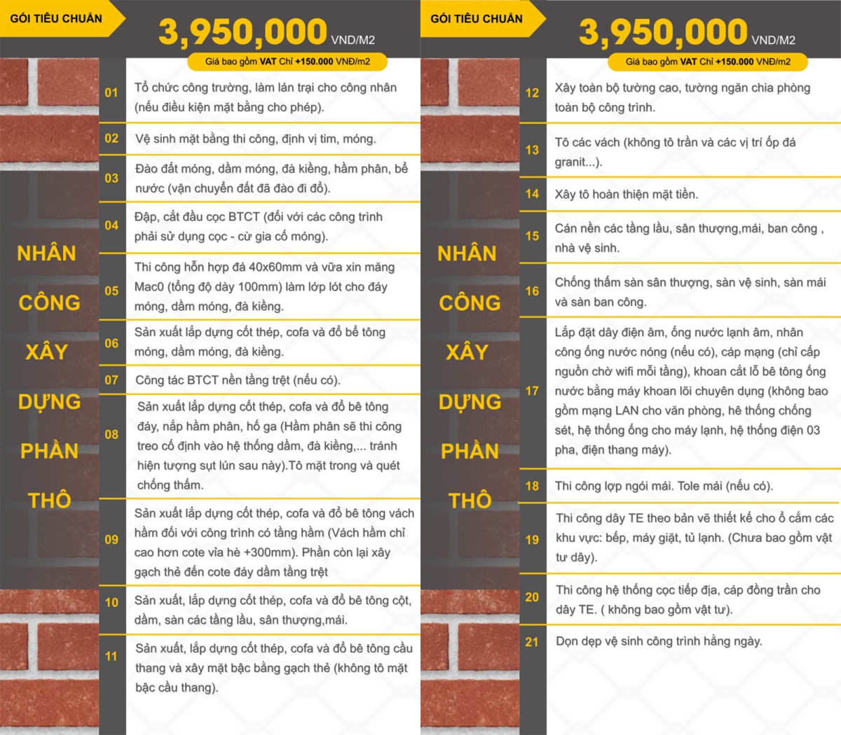 - Dưới đây là các hạng mục công việc trong gói thi công xây dựng thô trong gói tiêu chuẩn.